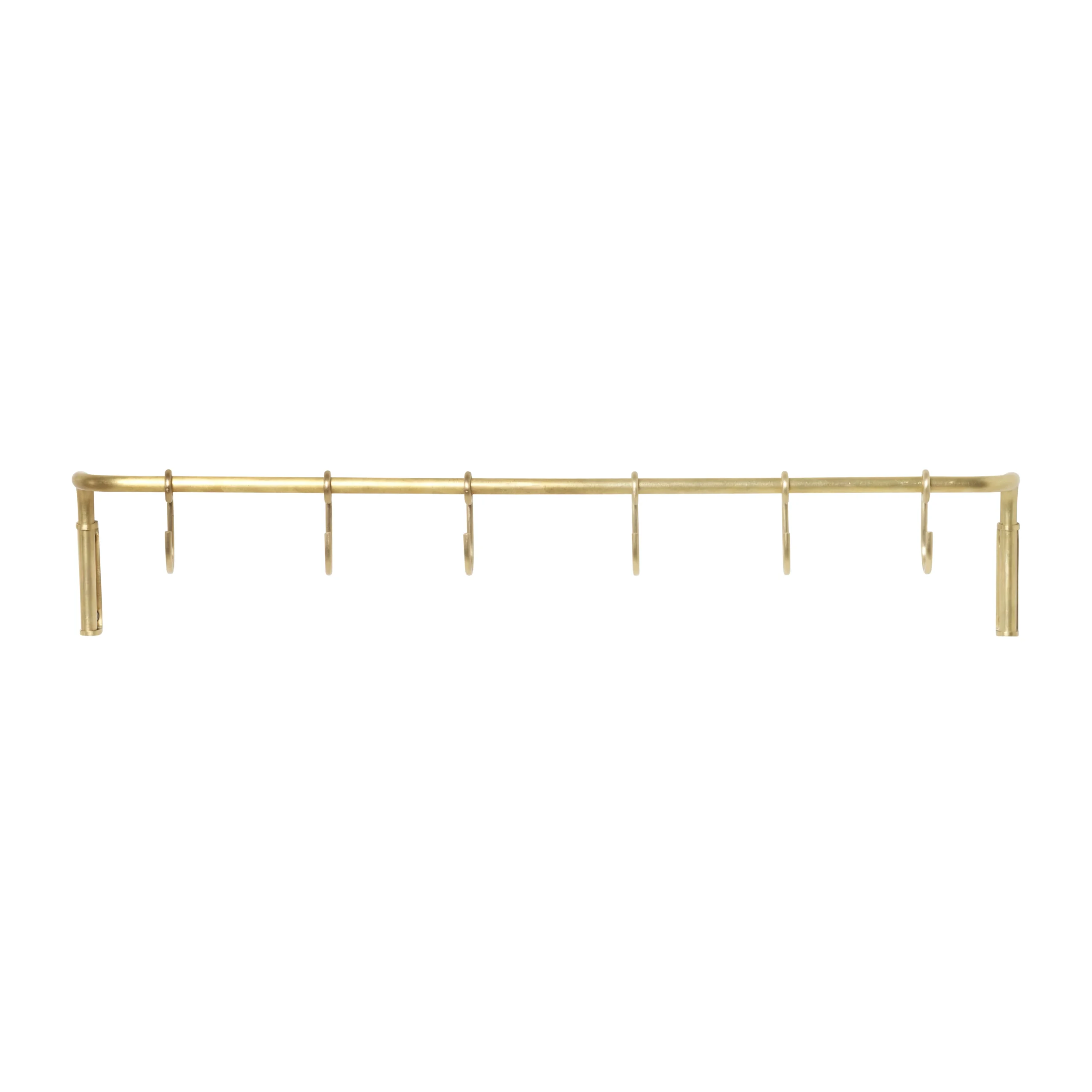 Die Kitchen Küchenstange mit 6 st Haken der dänischen Marke Ferm Living ist aus Metall mit einer Messingbeschichtung gefertigt und eine praktische und schöne Aufbewahrungslösung für verschiedene Utensilien und Textilien in der Küche. An den sechs Haken können Sie von Geschirrtüchern und Topflappen bis hin zu Sieben, Schneebesen und Zangen alles aufhängen. Die Küchenstange lässt sich dank ihres dezenten Designs zudem leicht mit verschiedenen Einrichtungsstilen kombinieren.