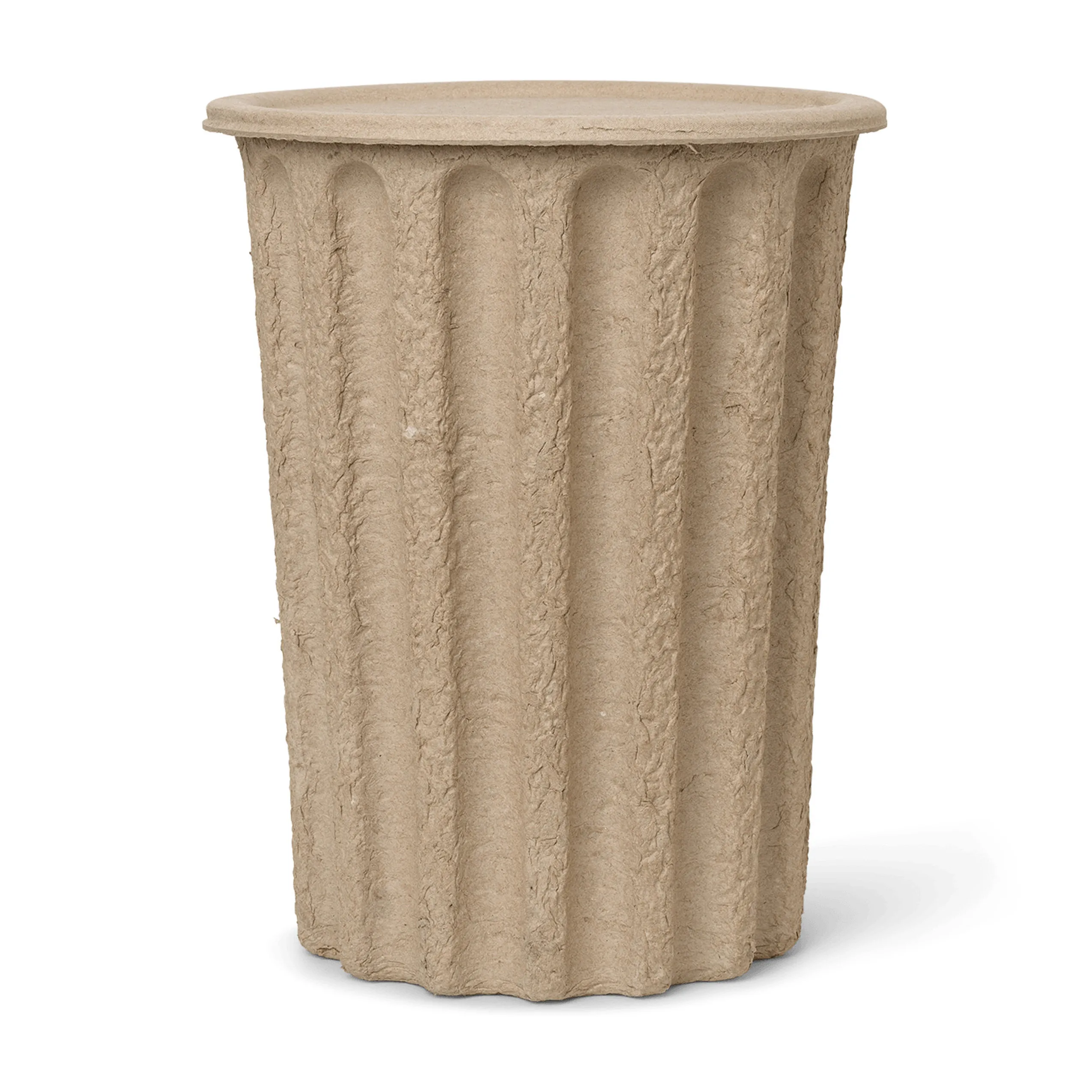 Der Paper Pulp Papierkorb der dänischen Marke Ferm Living besteht zu 100% aus recyceltem und abbaubarem Zellstoff. Der Papierkorb ist zylindrisch mit einer wellenförmigen Struktur und hat einen praktischen abnehmbaren Deckel. Stellen Sie den Papierkorb in Ihr Home Office oder verwenden Sie den stapelbaren Korb zur Aufbewahrung von beispielsweise Geschenkverpackungen.