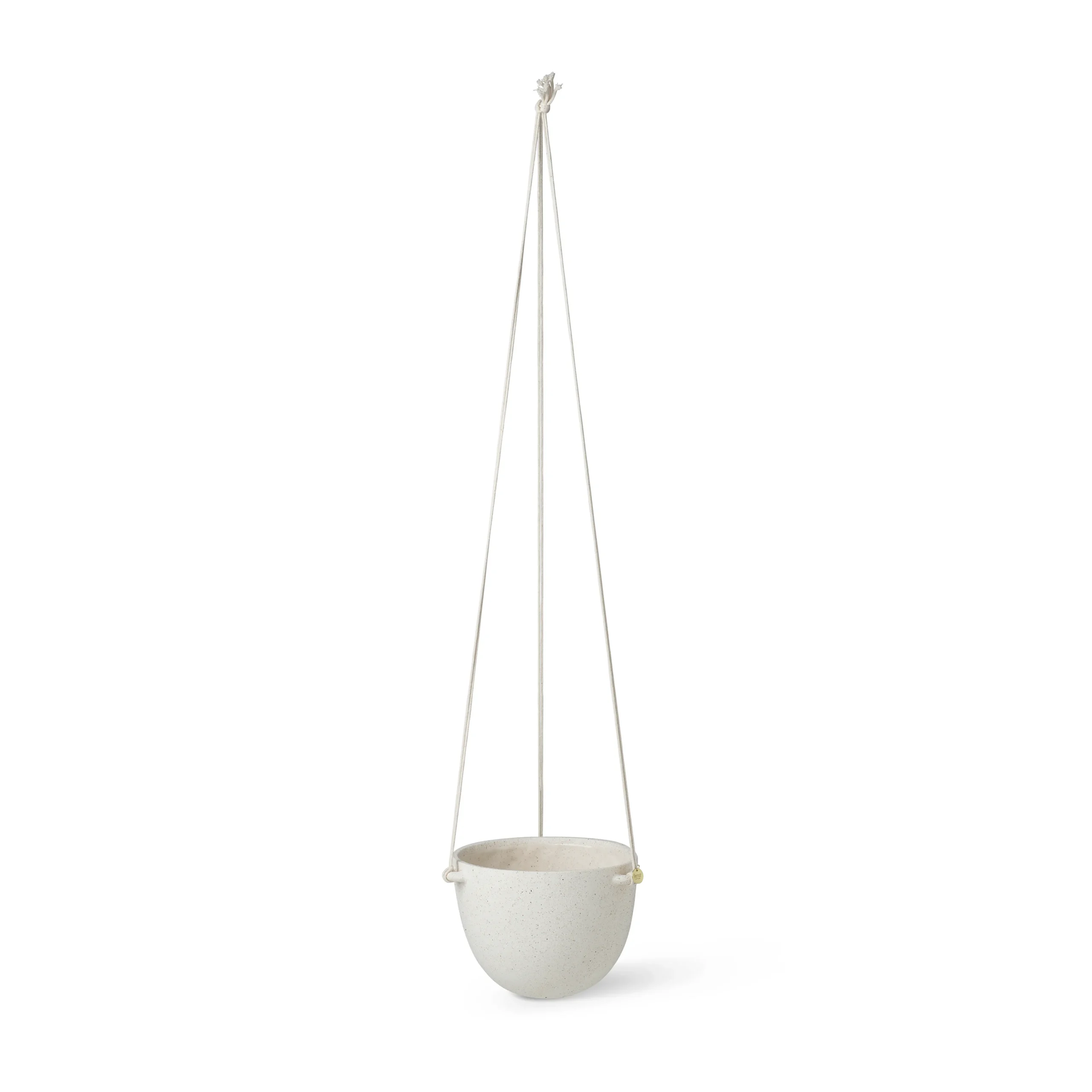 Der hängende Speckle Blumentopf Ø20,5cm stammt von der dänischen Marke Ferm Living und besteht aus Steinzeug mit einer grobkörnigen Oberfläche und einer Aufhängung aus gedrehtem Baumwollseil. Dank der langen Seillänge des hängenden Topfes können Sie die Höhe selbst einstellen, sodass der Blumentopf den perfekten Platz in Ihrem Zuhause findet.