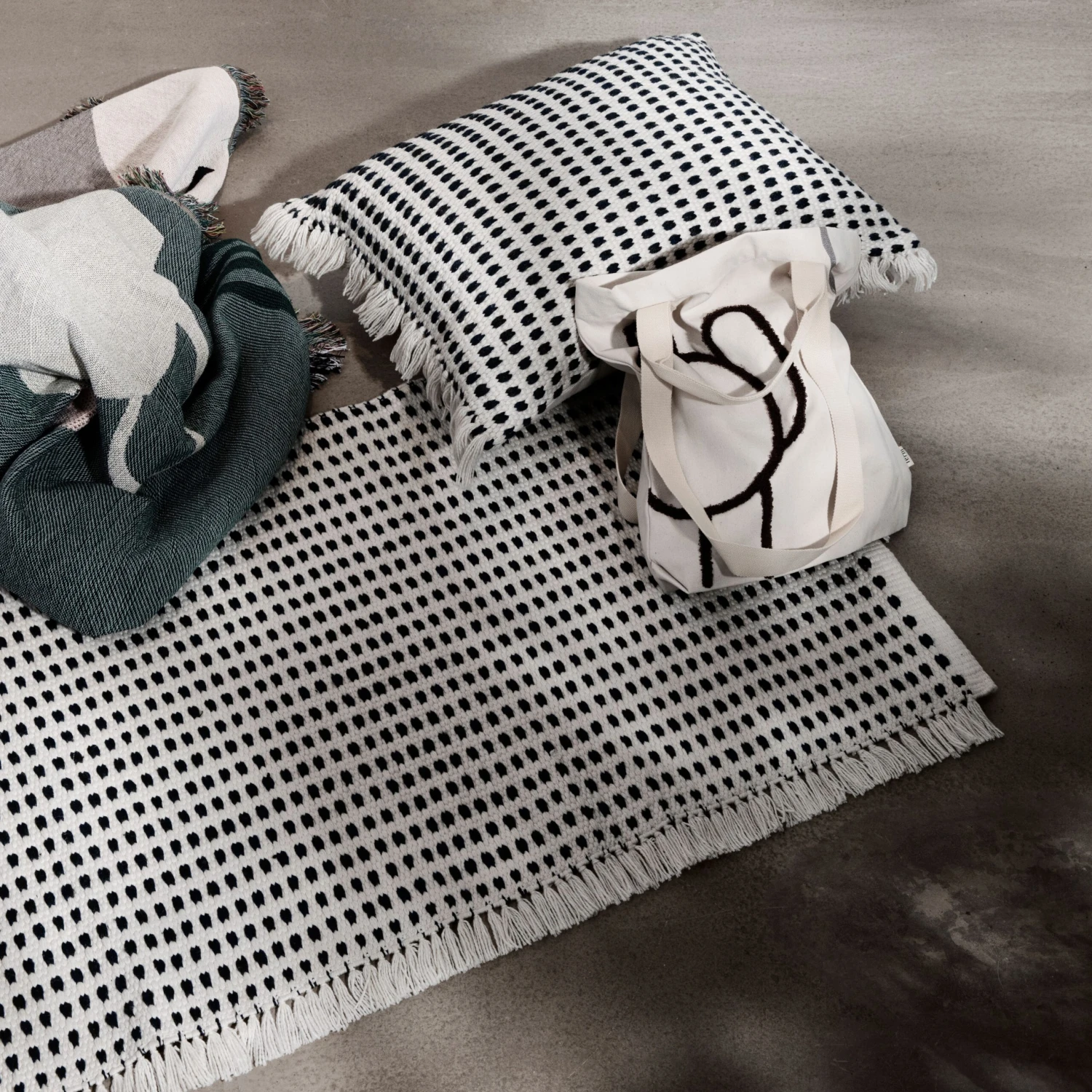 Der Way Outdoor Teppich 140 x 200 cm von Ferm Living besteht aus einem umweltfreundlichen, gewebten Polyestermaterial, das aus recycelten Plastikflaschen gewonnen wird. Das Material ist sehr langlebig und kann im Freien verwendet werden, wodurch sich der Teppich perfekt für beispielsweise Ihre Veranda oder Ihren Außenbereich eignet. Dank seines klassischen Farbschemas passt er auch in den Wohn- oder Essbereich. Das Design passt besonders gut zu einem maritimen Stil, verschmilzt aber auch mit vielen anderen Einrichtungsstilen. Die asymmetrisch platzierten Fransen verleihen dem ansonsten stilvollen Design eine verspielte Note.
